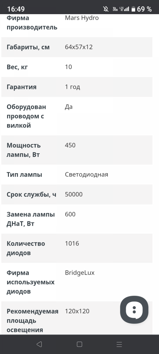 LED лампы совсем не греются и могут располагаться очень близко к растениям. Они невероятно экономичны и долговечны, очень компактны, однако резко ограничены в испускаемом спектре и световой отдаче. Лучше предпочесть специальные фито-LED-лампы с расширенным спектром и яркостью, но они ощутимо дороже. Для 1 куста может хватить лампы 115-180 Вт, а для квадрата 360-530 Вт.